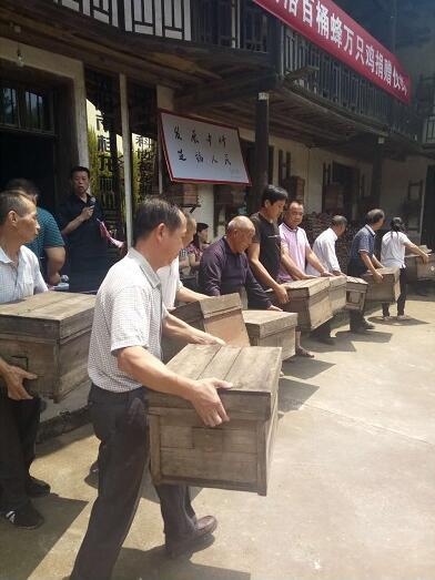 湖南省蜂業協會常務理事袁風格向村民捐贈百箱蜂蜜萬只雞