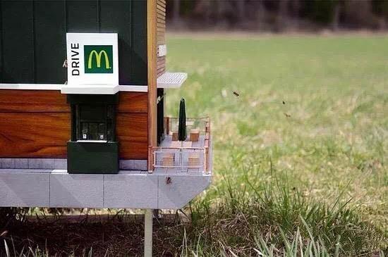 走近這家店,掀開屋頂才發(fā)現(xiàn),原來這是一家為上千只蜜蜂打造的蜂箱“麥當(dāng)勞”——McHive。這家位于瑞典的McHive,是由廣告公司NORDDDB設(shè)計(jì)并建造而成的,由于農(nóng)業(yè)發(fā)展和人類殺蟲劑的廣泛使用,在全球各地蜜蜂群體都受到嚴(yán)重威脅,而瑞典麥當(dāng)勞一直致力于保護(hù)瀕危的蜜蜂,于是就有了世界上最小的麥當(dāng)勞分店。