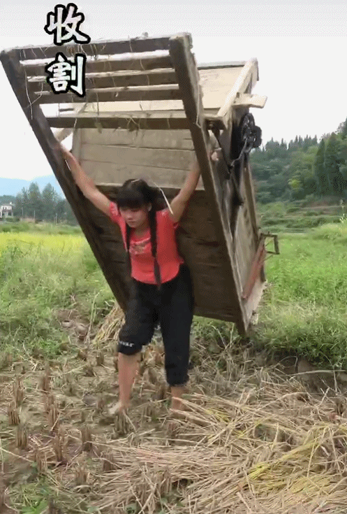 雖然人很瘦弱,但干活毫不含糊,比她還高的打谷機,說背就背。