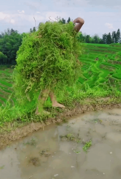弓著背、彎著腰在水田里插秧,一看就是插秧界的“扛把子”。